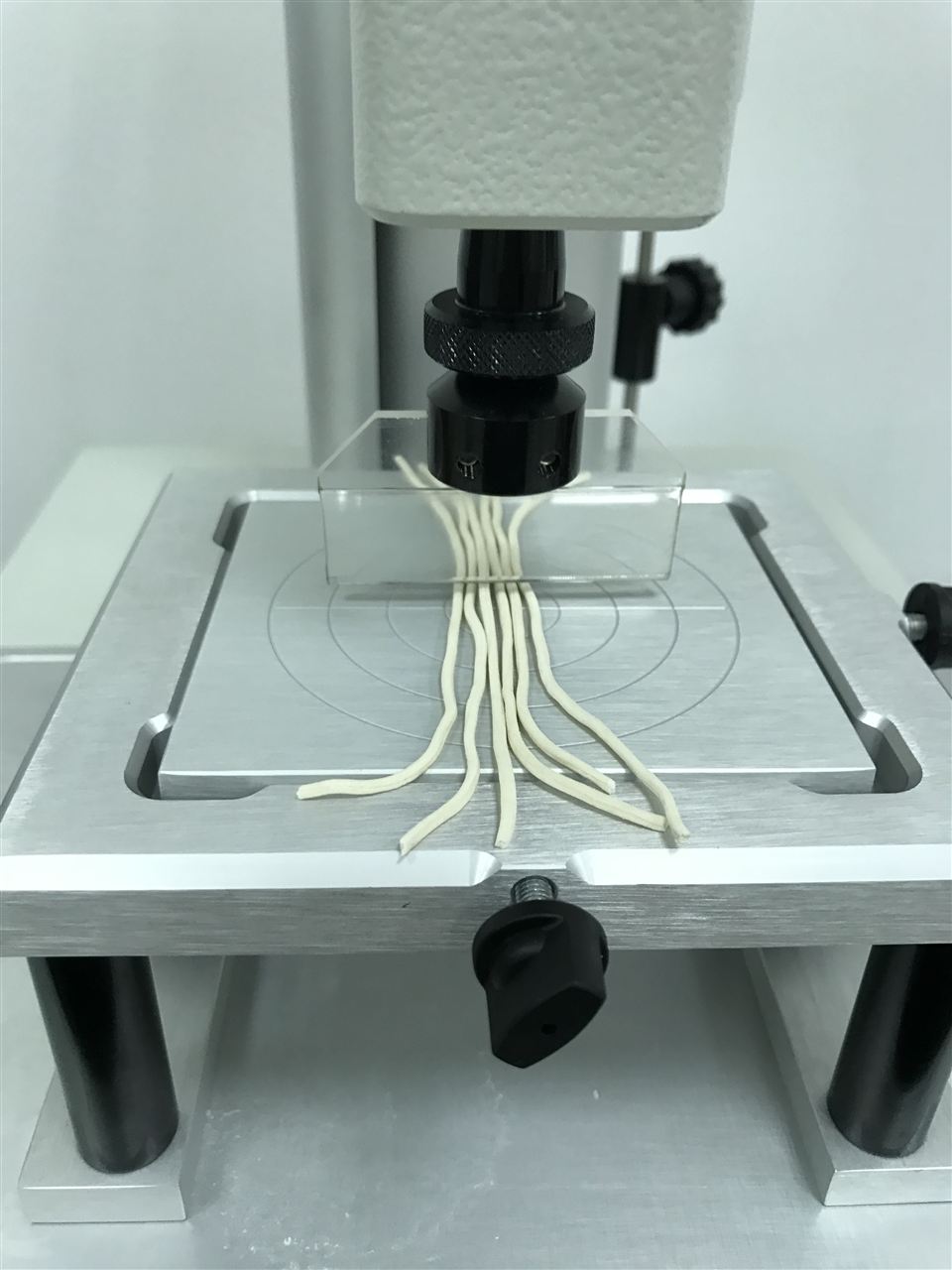 (10)P/PFS 面条粘性装置:该装置可用于测试煮熟面条、饺子皮、海带等带状样品的坚实度和粘性。