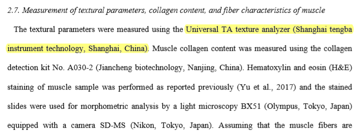 在该研究论文中,研究人员利用上海腾拔的Universal TA研究型国产质构仪用于测定草鱼肌肉的硬度、弹性、咀嚼性、回复性和内聚性。