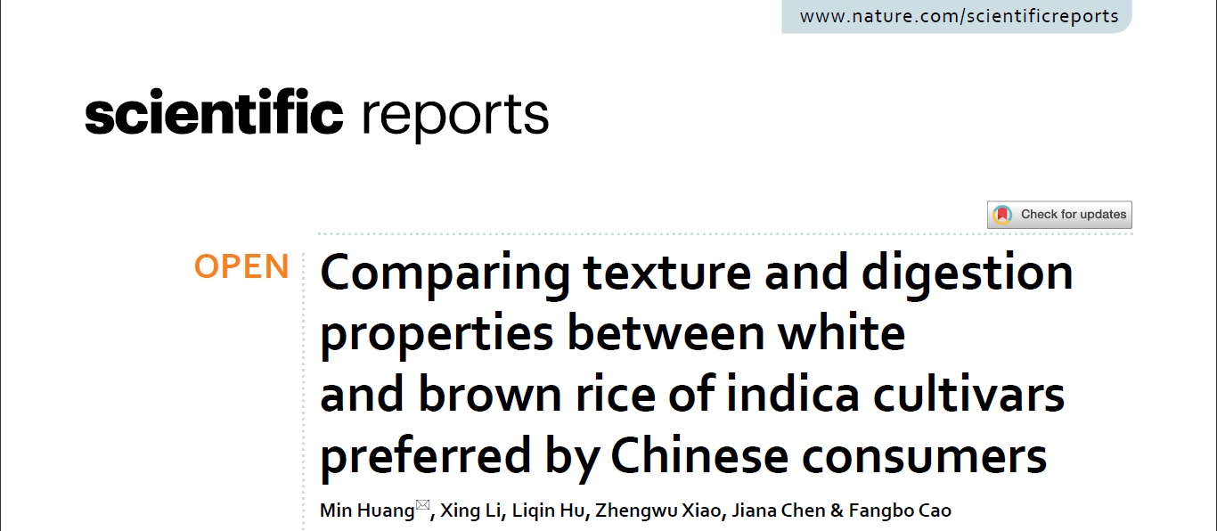 Technical articles上海腾拔Rapid TA+质构仪助力湖南农业大学作物生理与分子生物学教育部重点实验室研究人员在Nature子刊《Scientific Reports》发表了题为“Comparing texture and digestion properties between white and brown rice of indica c*rs preferred by Chinese consumers"的研究论文。